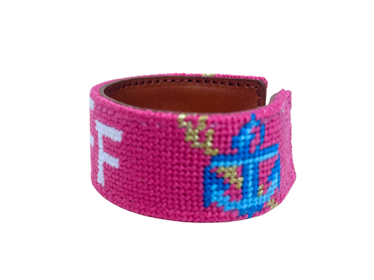 Monogram Needlepoint Cuff Bracelet - 1" Pink with Anchors