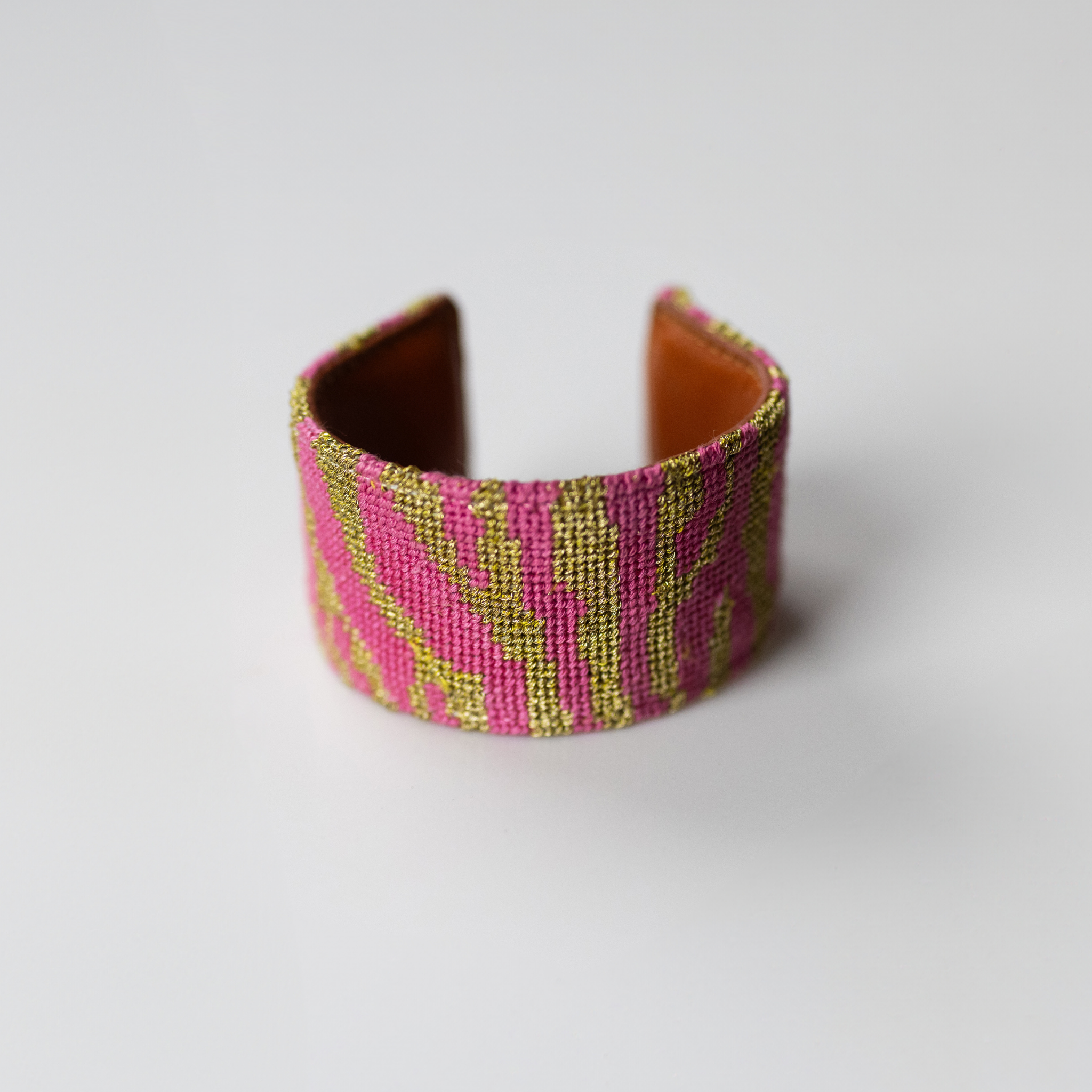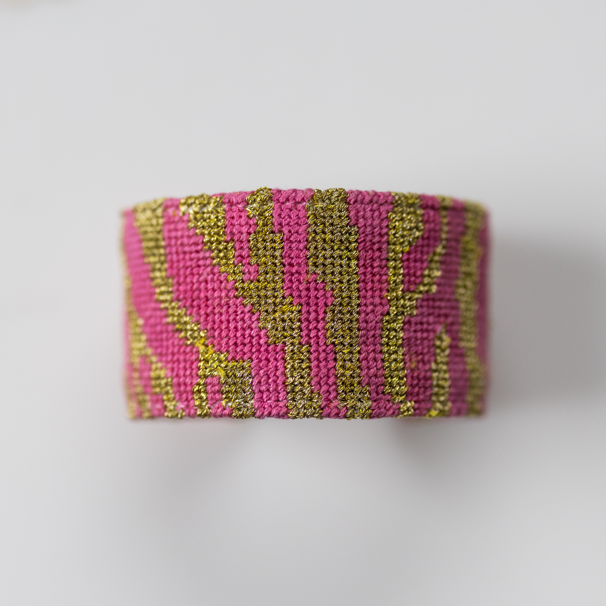 Jungle Love Pink and Gold Needlepoint Cuff Bracelet