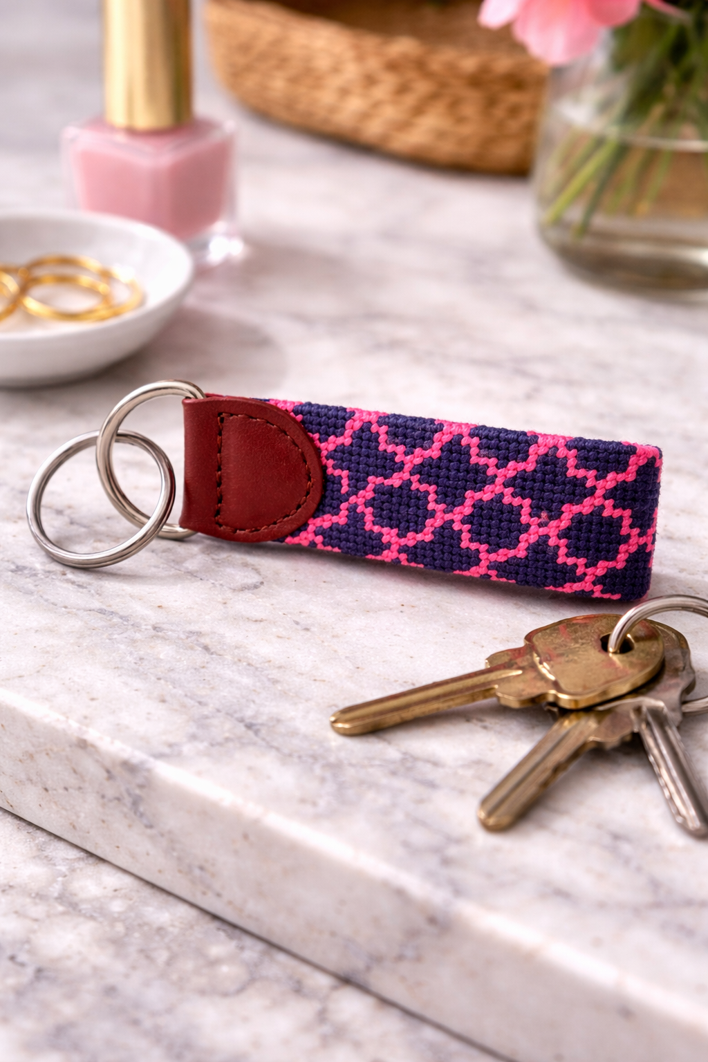 Needlepoint Quatrefoil Keychain