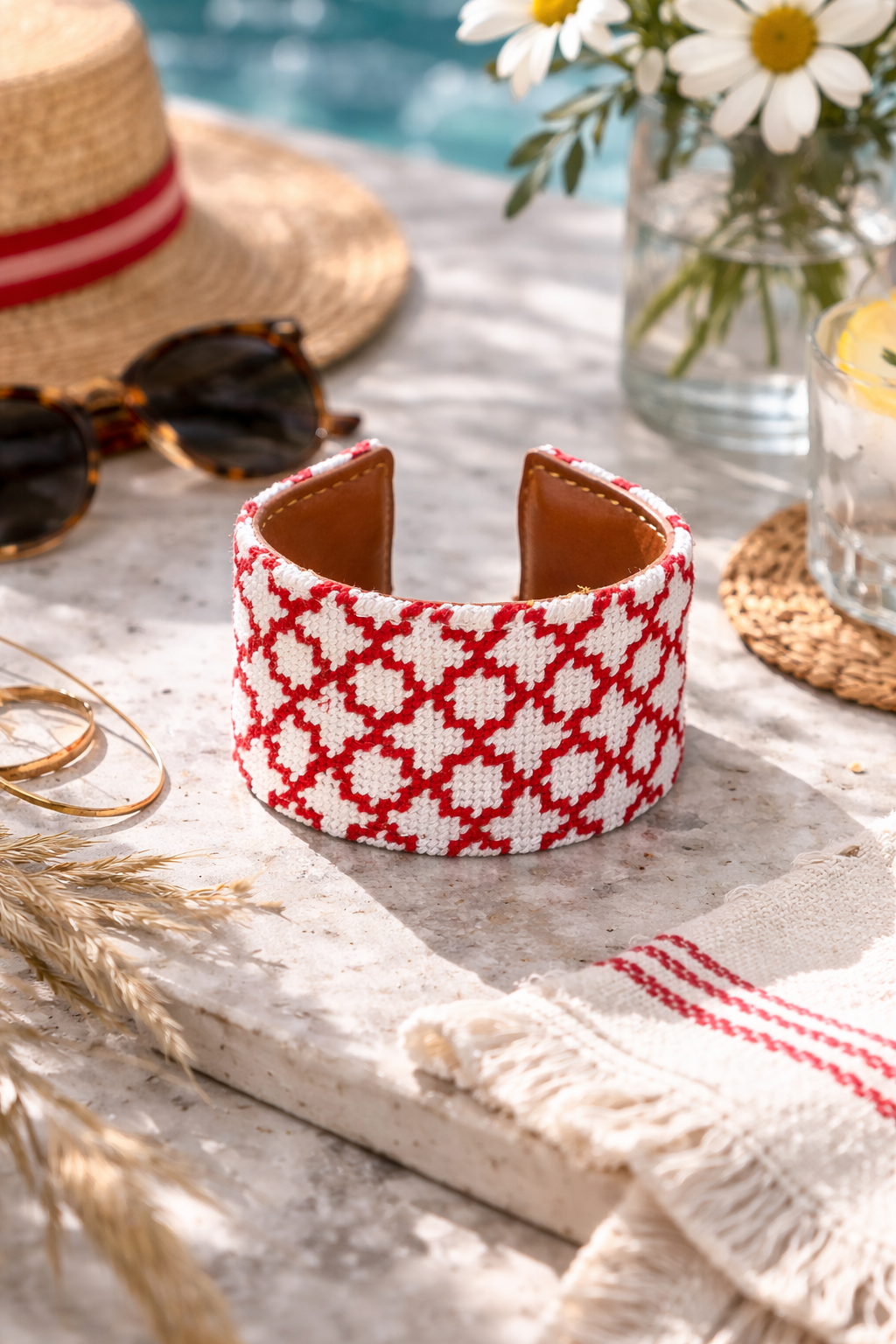 Red Quatrefoil Needlepoint Cuff