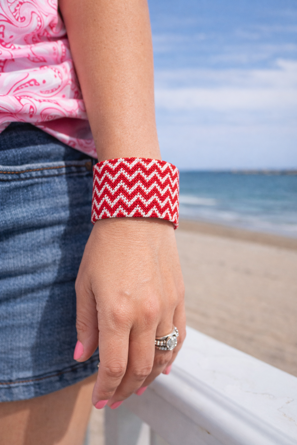 Red and White Chevron Needlepoint Cuff
